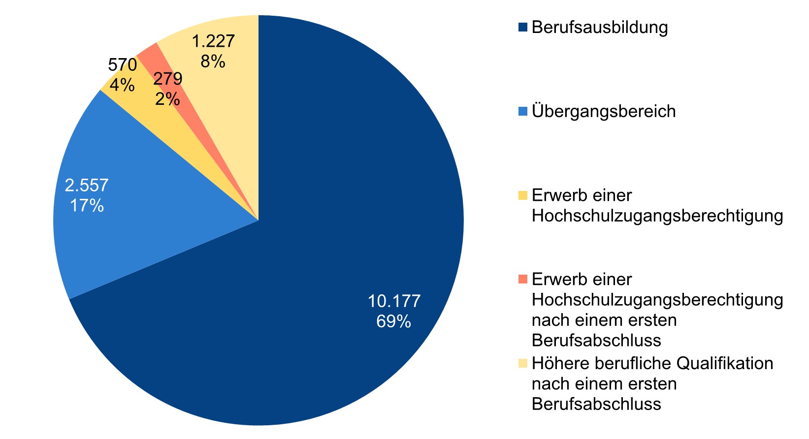 - 2.557 Schülerinnen und Schüler schließen Bildungsgänge im Übergangsbereich ab, die sie in die Lage versetzen sollen, eine Berufsausbildung aufzunehmen und zu durchlaufen.