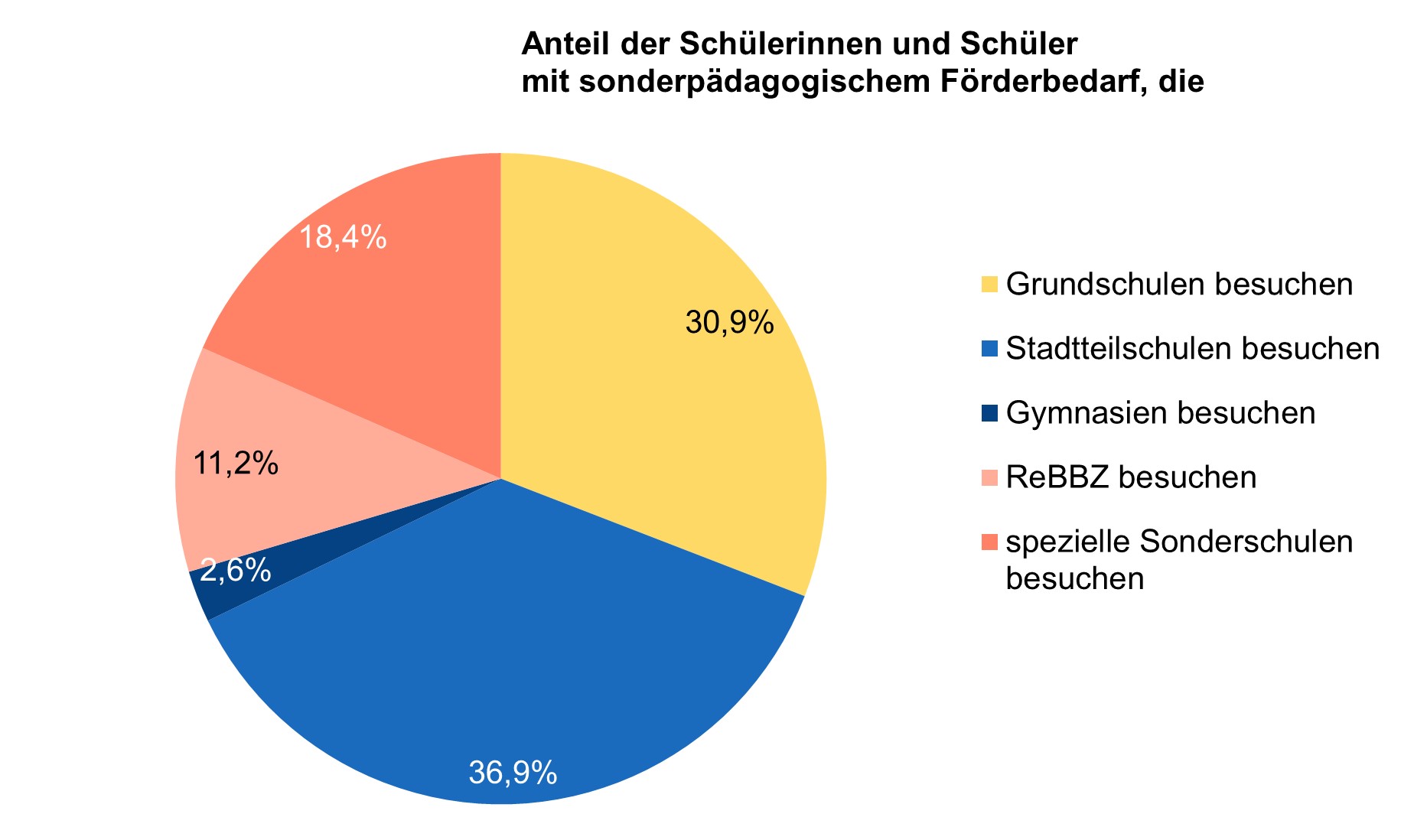 - Die Stadtteilschule ist die Schulform, in der die meisten Schülerinnen und Schüler mit sonderpädagogischem Förderbedarf anzutreffen sind.