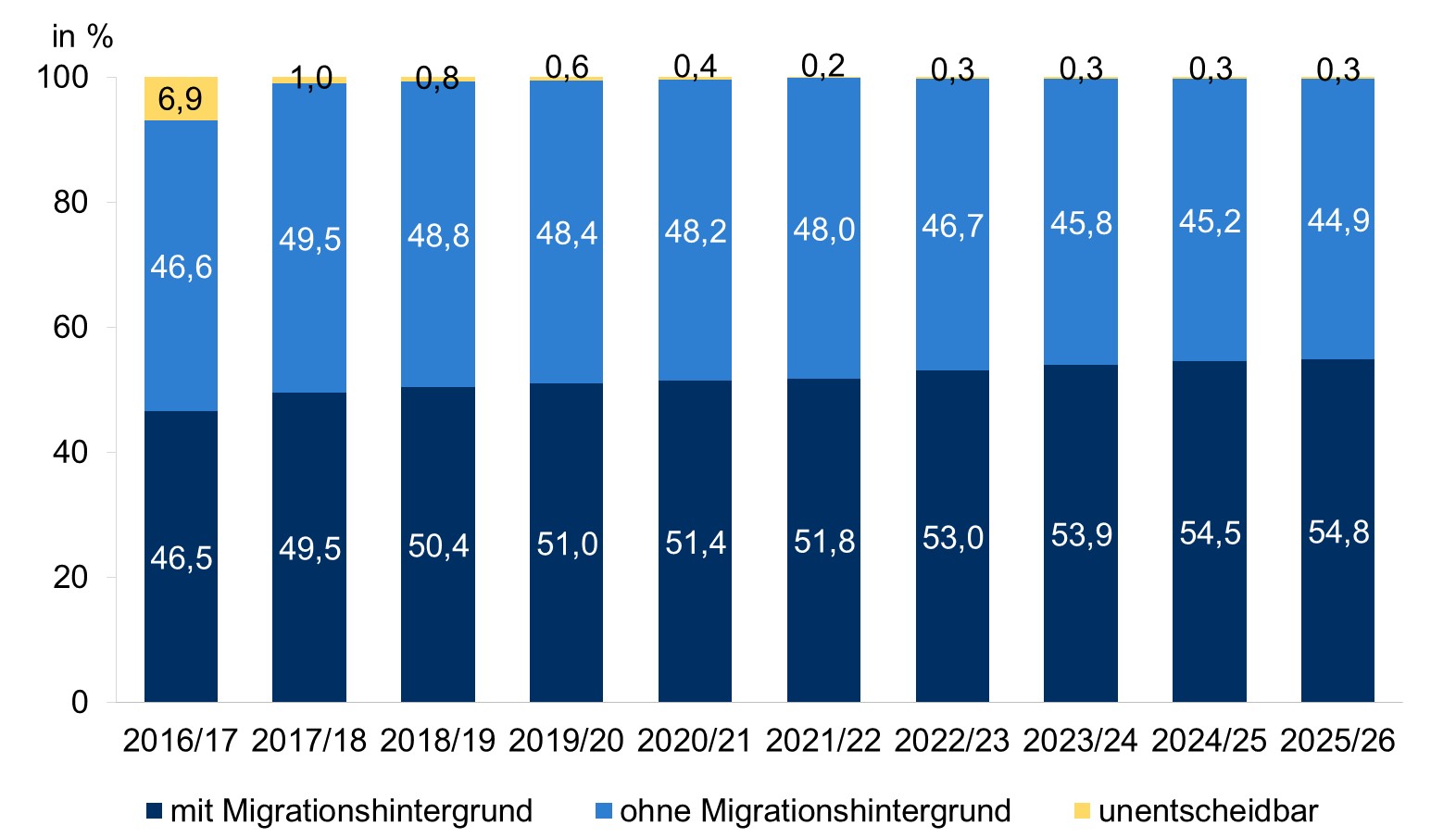 Anteile der Schüler*innen mit und ohne Migrationshintergrund im Schuljahr 2025/26